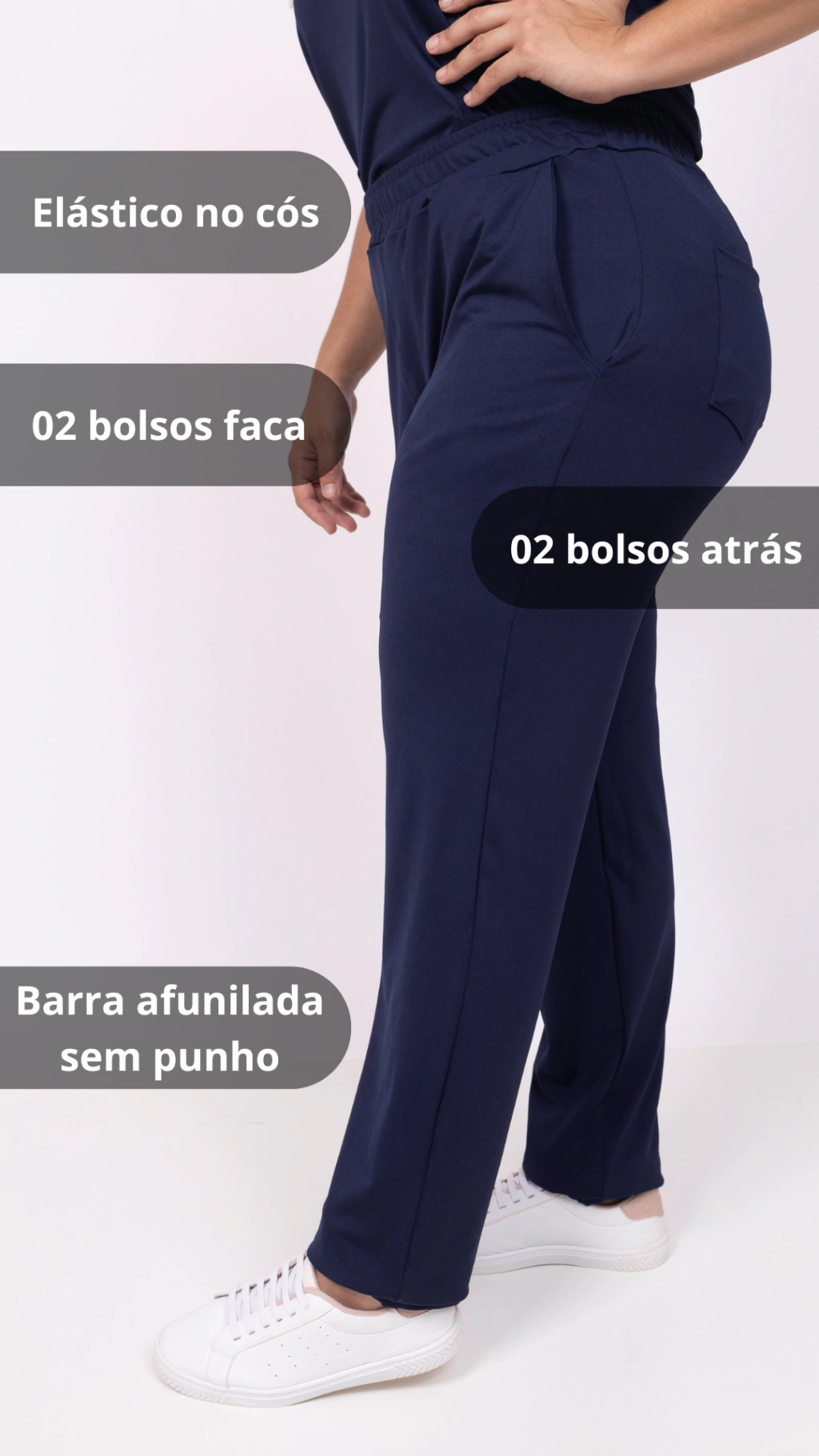 Essa calça é apenas a parte de baixo do scrub Dama Basic, feito em malha tecnológica de poliester dry com elastano.