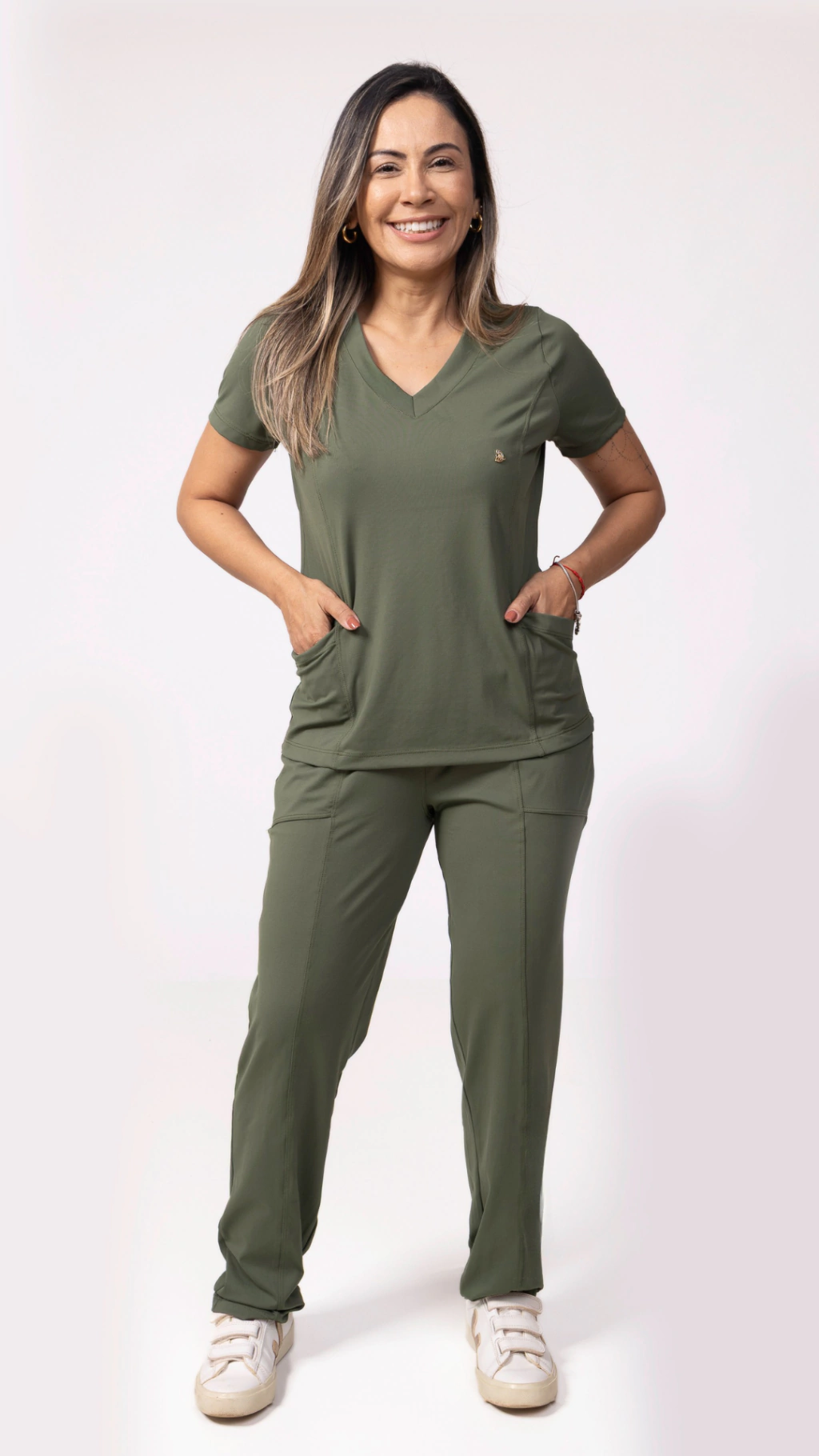 O scrub Dama Flexy é confeccionado em malha Super Comfort, a base de poliamida 92% e Elastano 8%, com tecnologia easy care que confere grande praticidade, seca rápido e não precisa passar.